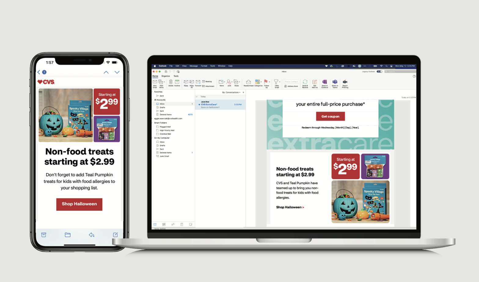 When highlighting products, bringing them to life is essential. We’ll use inspirational, in‑house product photography that shows items in use, often with hands interacting with them. This Halloween 2025 concept was fully pitched and photographed in‑house, and the images were used across all tactics—including direct mail, email, social, paid media, and the website.